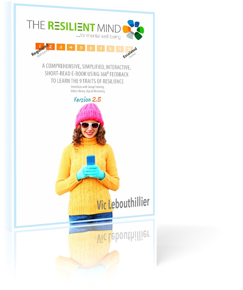 The Resilient Mind’s™ first publication by Vic was released in 2018 and has had 4 peer reviewed revisions to date. It’s a new concept in training: featuring video link commentaries, 360° feedback and self-awareness exercises which all interfaces with group gamification training and mentoring.